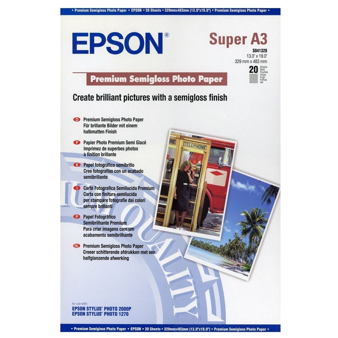Supplied as a 20-sheet pack in A3+ size (329 x 483mm / 13" x 19"), this Epson premium photo paper is ideal for high-impact photos, display prints, portfolios, and professional presentations.